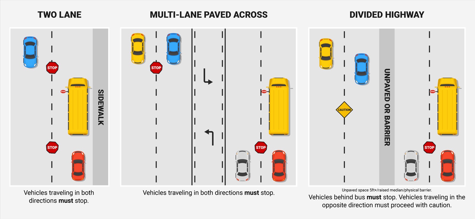 Florida law (s. 316.172) requires drivers to stop when a school bus displays a stop signal. Drivers can only resume driving when the stop signal is withdrawn.
